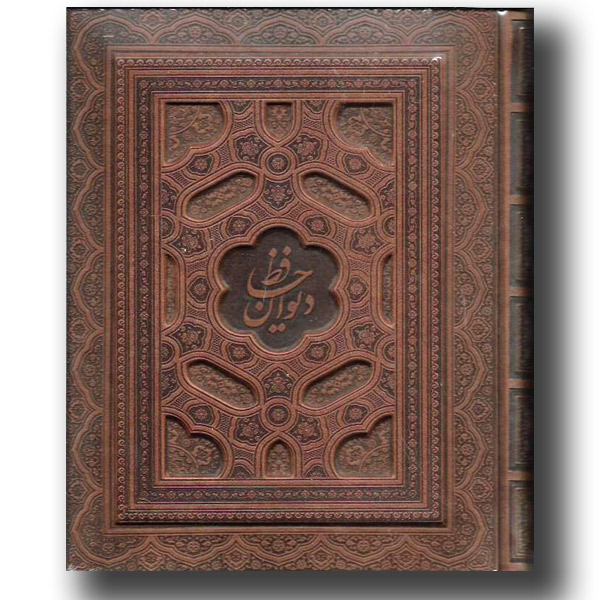 کتاب دیوان حافظ - وزیری جعبه دار-چرم-مصور- طرح برجسته مس