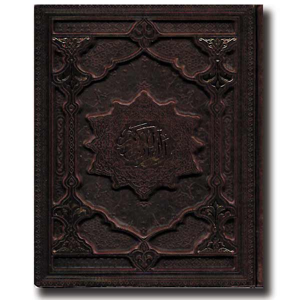 کتاب قرآن کریم وزیری گلاسه قاب کشویی پلاک دار چرم برجسته