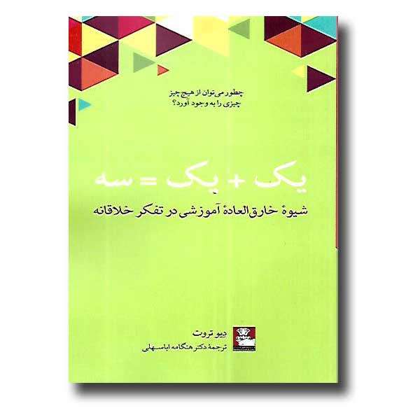 یک + یک = سه، مجموعهای از حکایتهایِ خواندنیست که در شما ایجاد انگیزه میکند، آزمایش فکری طراحیشدهای که میتواند گرمایی در آتش بلندپروازیهای خلاقانۀ شما ایجاد کند. از یک ملوان که در جنگ جهانی سه بار جان سالم به در میبَرد تا تاجر مرگ که از نامش برای جایزۀ صلح الهام گرفته شد و کولیای که دو انگشتش را از دست میدهد تا موسیقی جاز را نوسازی کند. داستانهای حکیمانهای از تبلیغات واقعی و فریادهای حمایتکننده برای تمام آنهایی که میخواهند متفاوت فکر کنند، آنهایی که روی پای خودشان میایستند و حقیقتاً مبتکرند. عقاید دِیو تروت، ایدههای شایستهای هستند که قابلیت استفاده برای نوشتن یک رمان را دارند. برای ساخت و تهیه یک فیلم، برای تولید و راهاندازی یک محصول، برای مدیریت یک تیم فوتبال، برای سازماندهی مواردی که زندگی را عوض میکنند و هر فعالیتی که شما میتوانید تصورش را بکنید. یک نابغۀ تمامعیار.