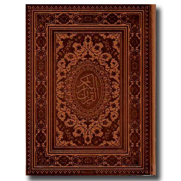 کتاب قرآن کریم وزیری گلاسه قاب کشویی پلاک دار چرم برجسته